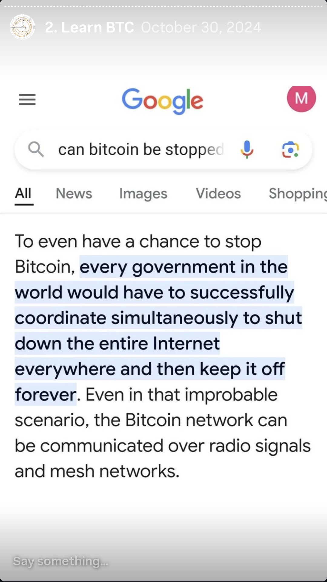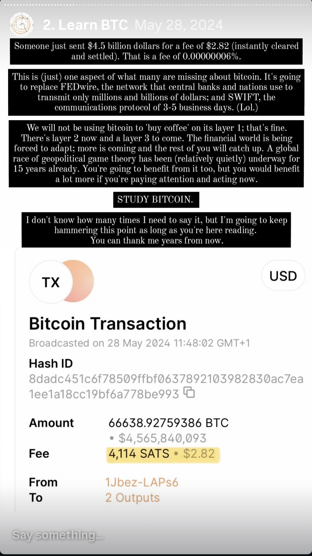 Instagram Stories of ₿itcoin Education